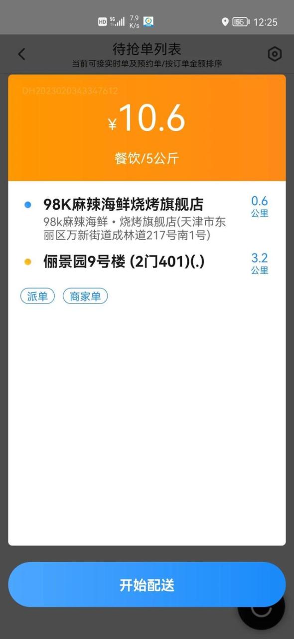 第四单,这个空港相对有点拉胯,等了还不得半小时没有订单,最后开到成林道,接到小屁单,从98K烧烤去俪景园的订单,10.6元。
