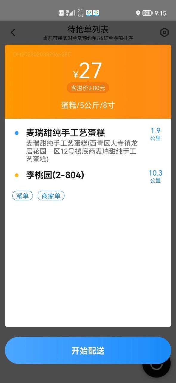 第一单,龙居花园一区麦瑞甜蛋糕房去 李桃园,这个地方还真是没去过,津南区,这一单10公里,27元。