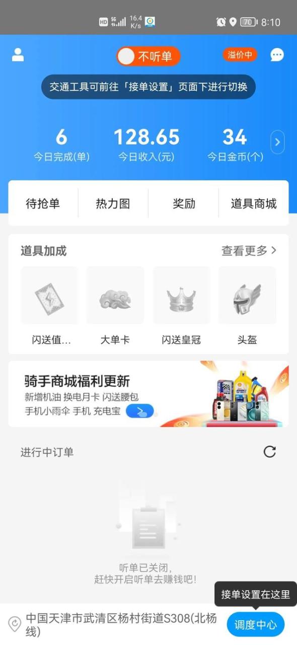 今天起的早,避免了昨天睡懒觉的导致起晚的问题,今天依旧晚班,到现在为止一共跑了6个订单,总计晚128.65元,今天的单值总体来说要不昨天好一点,但是也有不好的地方到了 空港没有活。