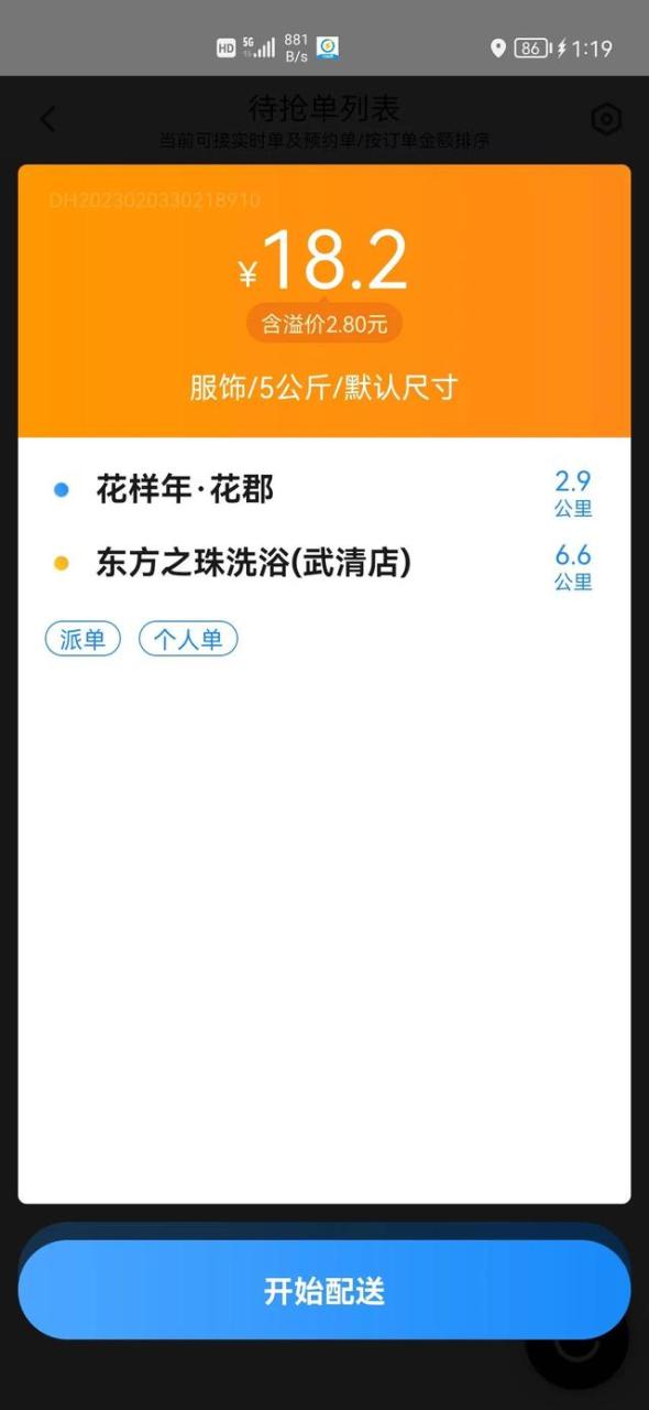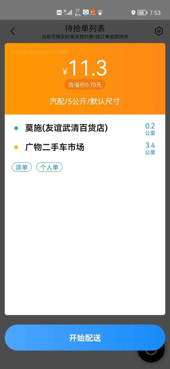 明天该上早班了,晚上还要家庭聚会,不知道能不能跑,正好看见顺风车明天有一单从家附近到武清六力中学的,50块钱。果断接单,等明天早起把顾客送到地,我看看有没有机会跑一单半单闪送,哪怕送个煎饼果子也可以啊。