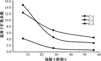 图2 C55索塔混凝土配合比氯离子扩散系数曲线