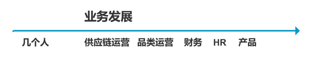 这时候,人多了起来,问题就多了,比如 5 号要催供应商 A 还钱,10 号要给员工发工资,这时候就要引入财务。与此同时,会遇到供应商拖欠尾款、与员工发生法律纠纷,就需要引入法务。此外,筛选岗位的简历、考核员工晋升或淘汰,就需要引入 HR.
