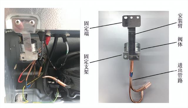(2)电动阀和冰箱箱体的连接和固定需要通过较长的安装臂来实现,使用螺钉固定后成为悬臂结构,这种安装设计方式进一步加大了电动阀的振动效果,容易将振动传递到冰箱箱体上,造成整机的异常振动噪声表现;