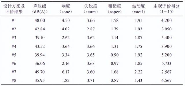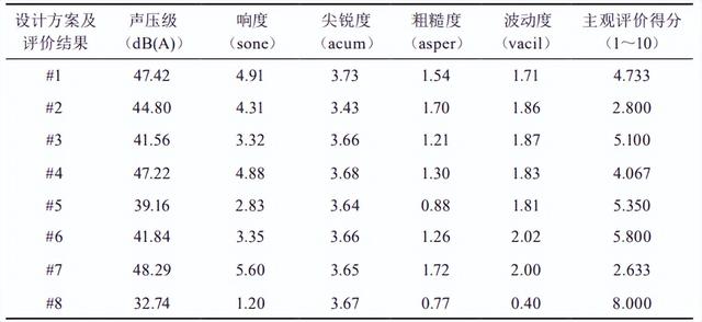 (2)针对提出的电动阀各种优化改善结构设计,进行了声品质客观参数计算及主观评价研究,其中方案#8的组合设计方案,客观参数改善明显且主观评分最高,能够满足用户需求;