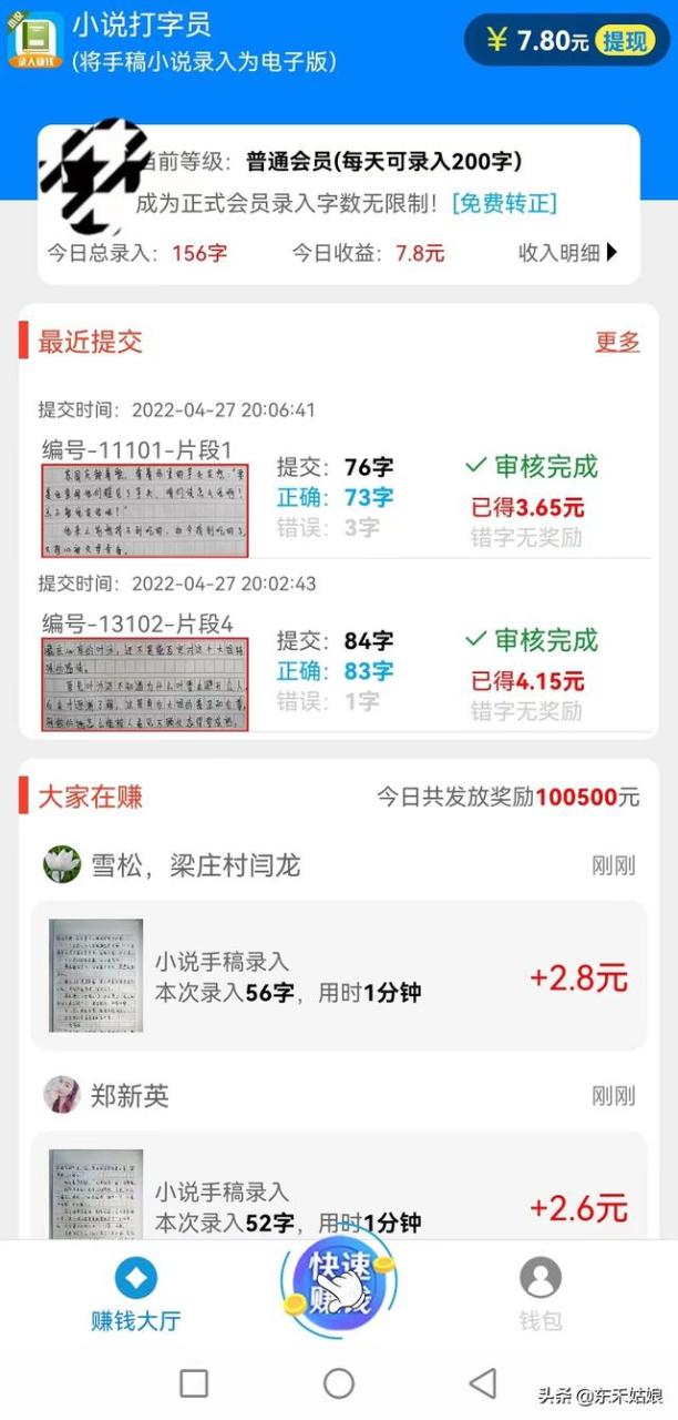 其名字为小说打字员,点进去先是要授权微信登录,然后就可以做任务,普通会员一天只能录入200字大概到手10元(这赚钱也忒容易了点,天上掉馅饼的事大家千万不要相信),需要拉3个人才能成为永久会员?(其实就是叫你拉人入坑