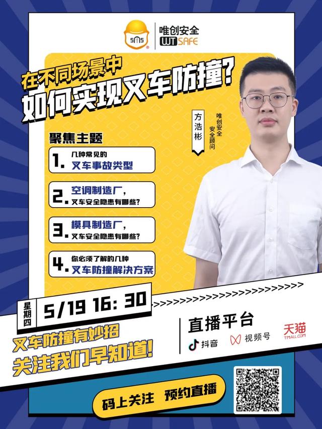 在不同场景中,如何实现叉车防撞?唯创安全有妙招,预约直播抢先知道!