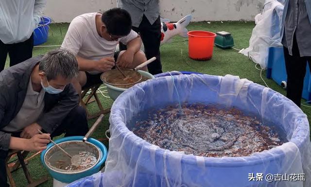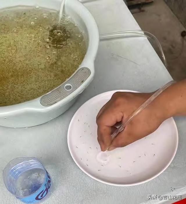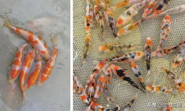 红白锦鲤大正三色锦鲤在水花下塘经过40天的饲养后,体长可以达到5厘米左右,此时进行第1次挑选(图2)。昭和三色一般在出苗3天后就要挑“黑仔”,即将全黑个体挑出继续培养,其余全部淘汰(图3)。黑仔培养45天后进行一选。