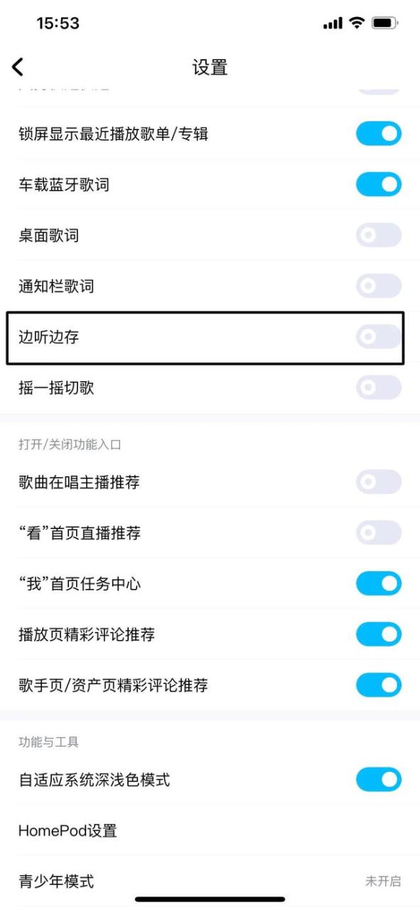 开通音乐包或会员后,打开酷狗音乐里的设置,往下拉,找到(边听边存)把它关掉