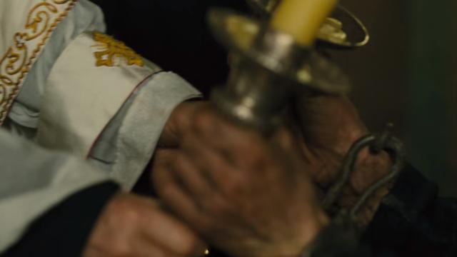 主教告诉警察,银餐具就是自己送给他的,他只是走得太过匆忙,看起来像个小偷,说罢还拿起屋里的仅剩的两只银烛台送给他。