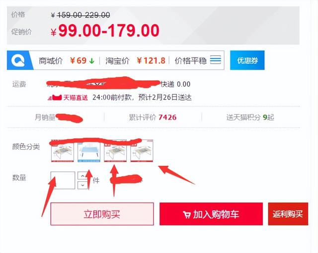 比如上面的那款学生用的课桌,我们就可以通过把低中高几种不同售价的产品进行组合,然后主图来展示较高价格的那款商品,这样也可以让消费者产生我们产品售价很低,但是买到的商品却是和其他高价产品一样的想法,从而吸引客户点击。客户进店以后我们客服在通过话术留住客户。不过用这个方法的时候有几个点是需要注意的,首先展示的主图商品不能和售价低的商品相差太大,比如我展示的是售价179的产品,但是露出价格却是99,这样虽然能引来访客,但是引来的访客很容易流失掉,因为这样给客户产生的落差太大。我们应当用价格居中或者相差不大的产品来作为主图展示,从而缩小客户的心理落差。