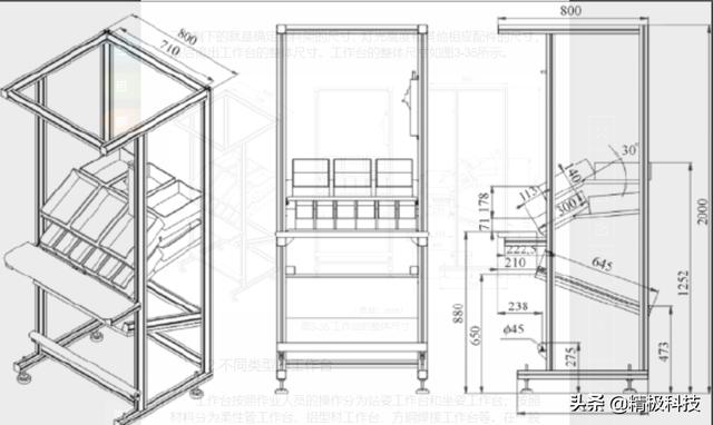 精益单元生产线工作台的高度和台面尺寸基本确定后,工作台的尺寸也就确定了,剩下的就是确定物料架的尺寸,精益单元生产线工作台的尺寸也就确定了,剩下的就是确定物料架的尺寸、灯光高度和其他相应配件的尺寸,最后得出工作台的整体尺寸。工作台的整体尺寸如下图所示。