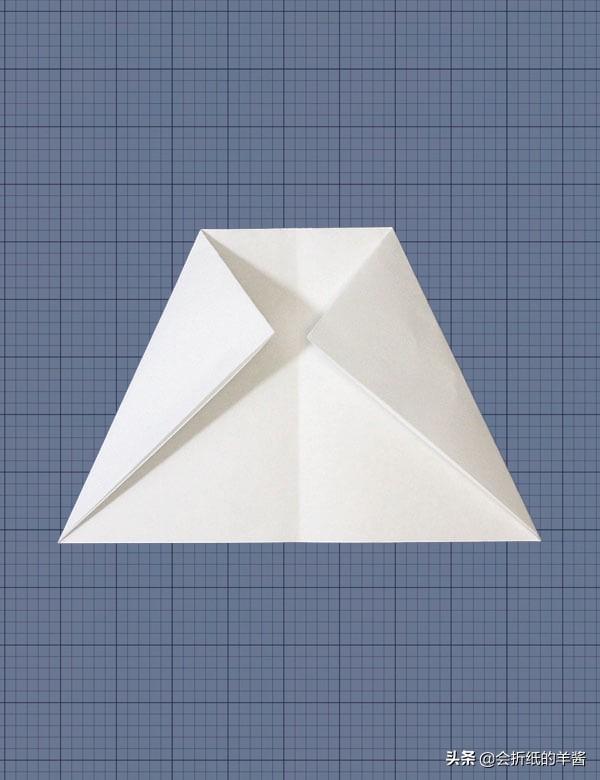 第 2 步:将顶角折叠到中心线,使折痕直接到达底角。