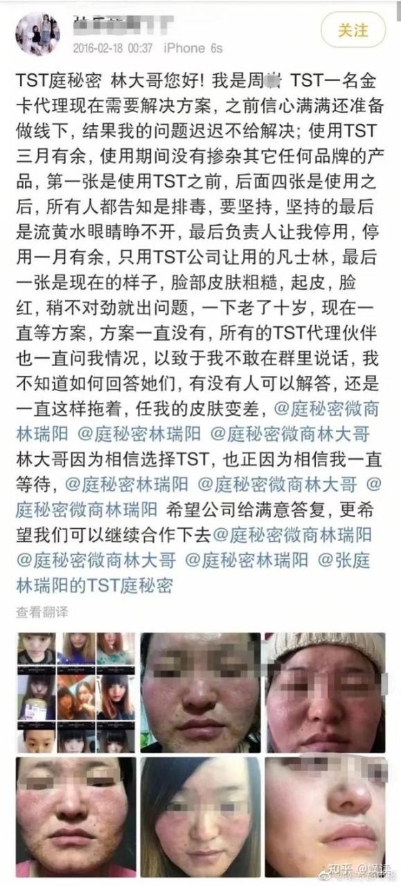 虽然这么多年来一直有人曝光使用TST护肤品烂脸的遭遇。
