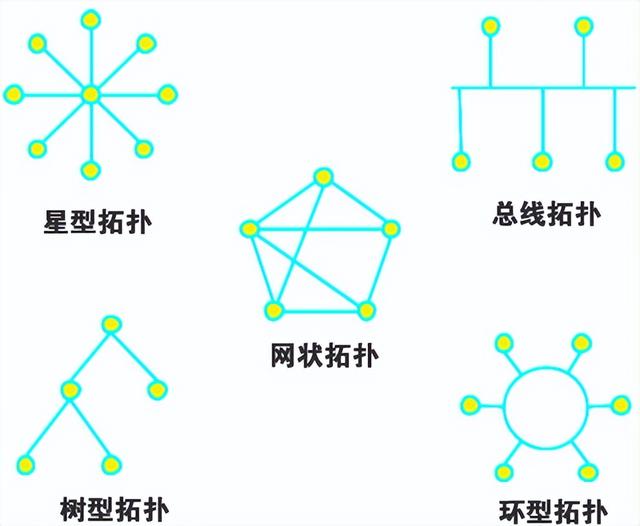 拓扑学是几何学的一个分支,它是由图论演变而来。拓扑学首先把实体抽象成与其大小、形状无关的点,将连接实体的线路抽象成线,进而研究点、线、面之间的关系,使人们对网络整体有一个明确的印象。 计算机网络的拓扑结构就是指网络中通信线路和站点(计算机或设备)的几何排列形式。这种几何排列形式通常有星型拓扑结构、树型拓扑结构、总线拓扑结构、环型拓扑结构、网状型拓扑结构等5种,如下图所示。从而计算机网络按拓扑结构可分为:星型网络、树型网络、总线型网络、环型网络和网状型网络5种。