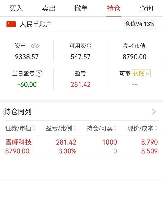 雪峰科技,天天过山车啊,这个主力是不是在做T啊,本来今天拿着可以不亏的,实在没忍住,做了一个T,结果是个倒T,反而还亏了。唉,真的是太难了。就不能大大方方的冲一把,真的是心累。
