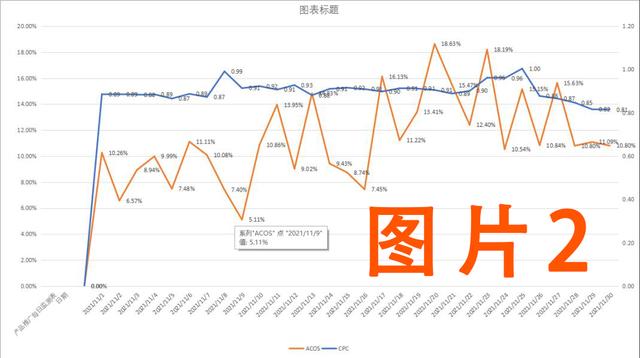 2. CPC 竞价为多少钱的时候,ACOS是比较低的?可以把这2项单独抽出来做个曲线图,如下图,可以看出,当CPC为0.91时,ACOS是最低的,这就给了我们竞价的参考。当然还有很多其他因素影响ACOS,最起码这是一个参考方向。