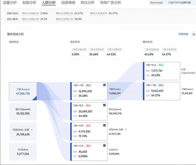 上来直接追求销量数据的转化往往是做不到的,因为竞争激烈的品类,很多对手已经进化到长期经营人群的阶段,你直接的转化从何而来,应该看到阶段性数据的进步,持续的让人群从A0-A1,从A1-A3,最终A3-A4转化,然后A5沉淀。