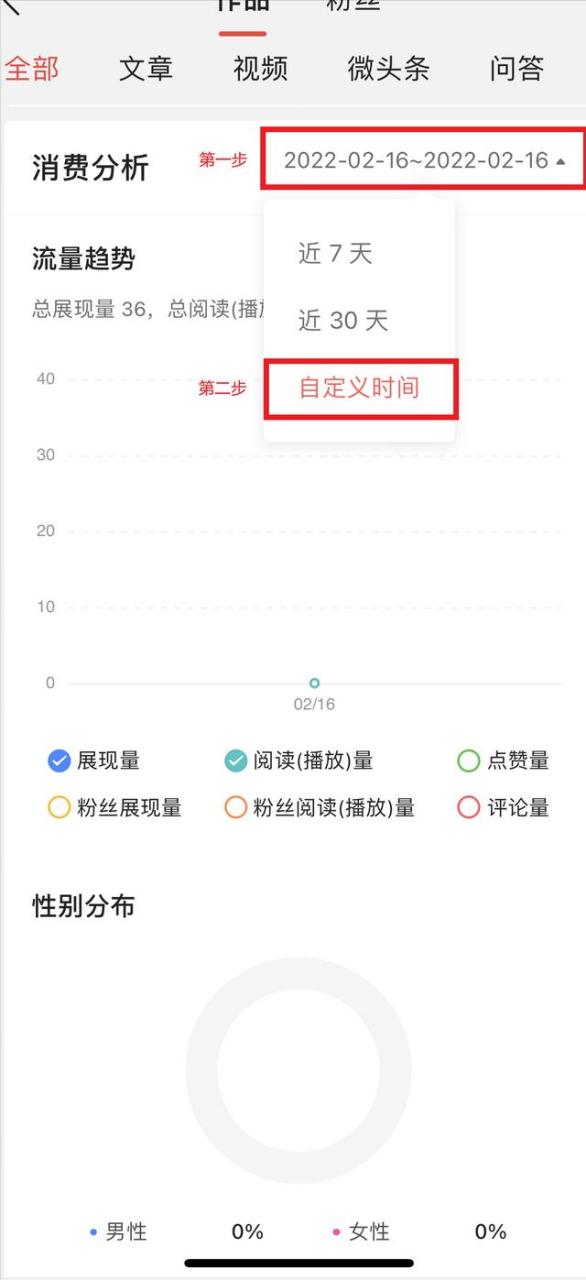 首先,性别受众是非常重要的,如果你发布文章一棍子打死,只针对女性用户或者男性用户,那么你这篇文章必定会事倍功半,就比如下面,通过头条的数据助手,显然你发布的文章只针对男性用户,这是很不合理的。