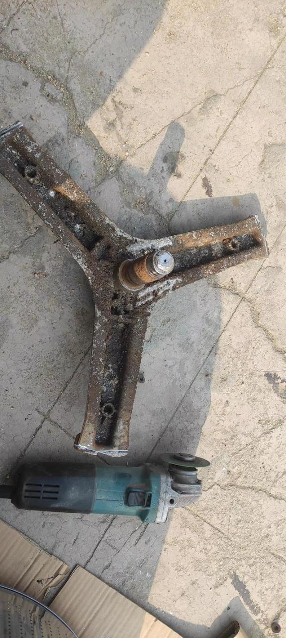 解决方法也看了下即便就两种,一是加热用热风枪或者喷枪烤螺丝。使胶融化便可以轻松拧下,奈何我没工具。二是暴力解决,用角磨机切割。这个可以有,反正也准备更换三角架,切吧!出去借了工具,几下切了下来。