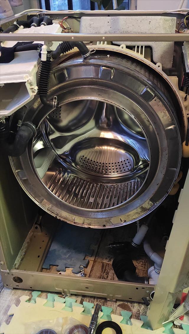 这样我们洗衣机前面的工作就完成了,可以看下拆解完的图片。接下来需要拆背面。