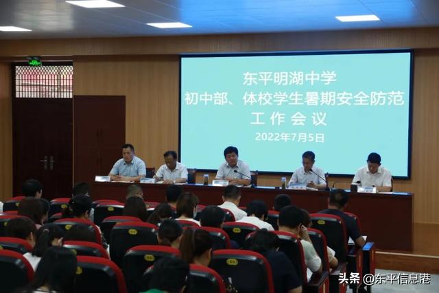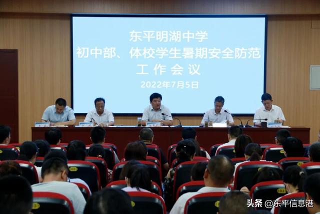 为做好暑假期间学生安全、学生管理与学习、教师培训提升等工作,东平明湖中学于7月5日上午在五号多功能厅举行初中部、体校暑期安全防范工作会议,学校相关领导,初中部、体校全体干部教师参加会议。