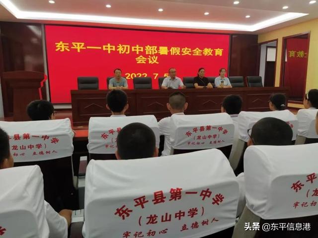 骄阳盛暑,凉风荷香,伴随着树间闪动的阳光,呼吸着花朵醉人的芬芳,暑假如期而至。2022年7月5日上午,东平一中初中部召开暑假安全教育会议,东平一中校长郭传锋、包级副校长李秀梅以及初中部全体师生参加会议。