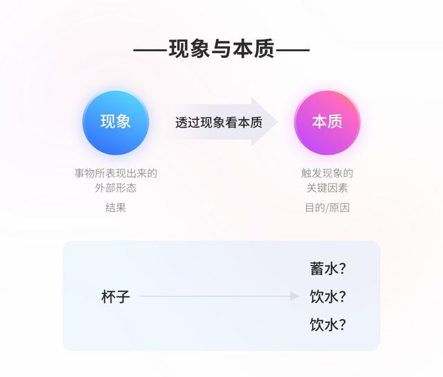例如:用户要一个杯子,我们就要知道用户想要造杯子背后的目的、原因,是蓄水?饮水?还是送礼?
