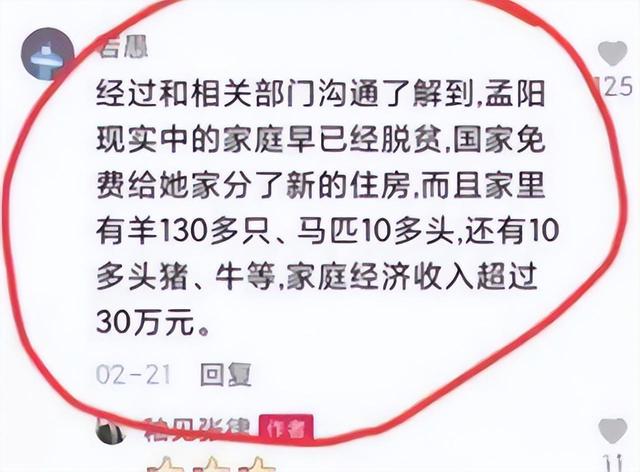 没过多久,网友们就挖出了她的家庭情况,揭秘了孟阳的身世。其实孟阳并没有她说的那么穷那么惨。她家很有钱。她平时戴的东西都很贵很时尚,戴的手表价值4万多元。孟阳以前有个账号叫梁山小云云,那个账号发布的视频孟阳扮演的角色比较惨。甚至穷到只能在身上放两个麻袋当衣服。于是,凉山电视台专门派人去调查情况,才发现凉山小云云和视频里完全不一样。