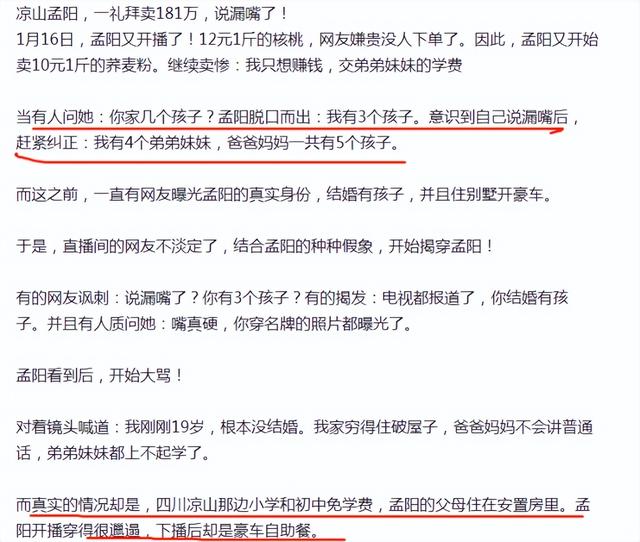 每次没人买核桃的时候,她都会说家里条件有多困难。她只想赚钱供弟弟妹妹上学。引起大家的同情后,销量就上升了!好运不可能一直找上她。梁山孟阳19岁在直播中翻车。