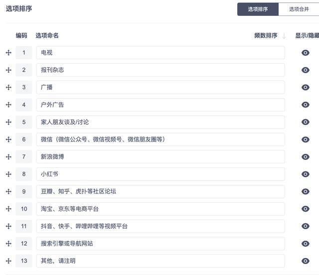 一种方法是隐藏选项,比如无人选择“其他”,可将其隐藏。同样也可以隐藏,“不知道”“不适用”“以上皆无”等你认为对问卷调查没有参考价值的选项。