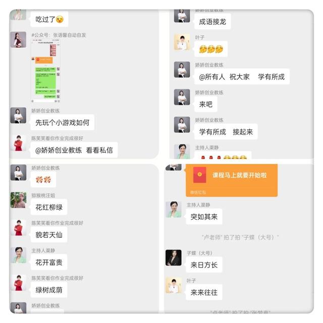 成语接龙是课程开始前,很适合去玩、活跃社群气氛的一个小游戏。