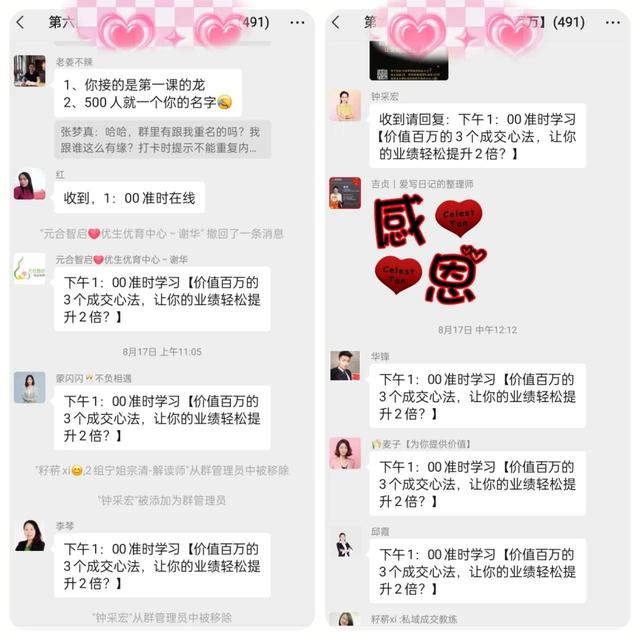 通知发完后,然后,社群里出现很多收到,以至于后面的人再看群信息的时候,就只看到收到这两个字,课程通知内容一概不知。