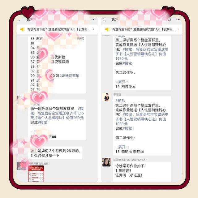 大家都去复盘接龙了,这么积极活跃,其他人看到了,能不被影响到吗?能不看看人家发的复盘内容吗?能不多了解学习一下吗?