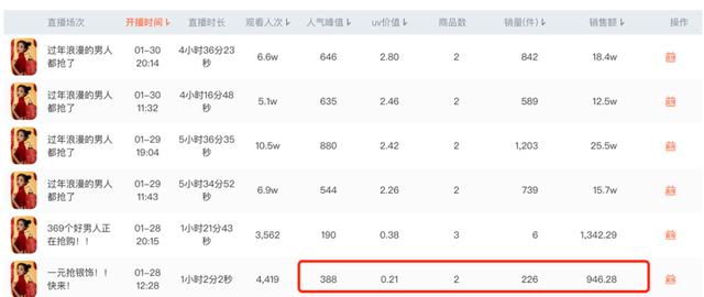 这个账号也是属于视频爆品玩法,产品主要就集中在两款银饰,但也因为这个定位,账号的直播周期只能围绕活动展开,每次新的周期都需要重新启动,有会有一个启动期。