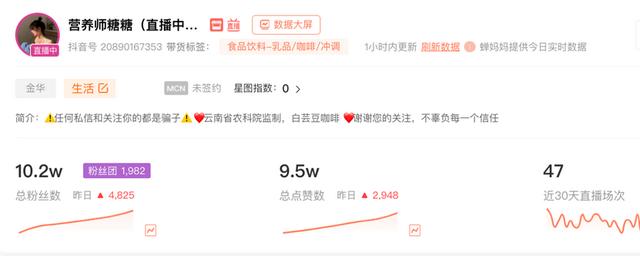 虽然这个账号的玩法和上面的“营养师糖糖”基本一致,糖糖账号基本数据稳定,没有出现明显的下滑,都是爆品视频起盘,但在后期运营的差异,也会呈现千差万别的效果。