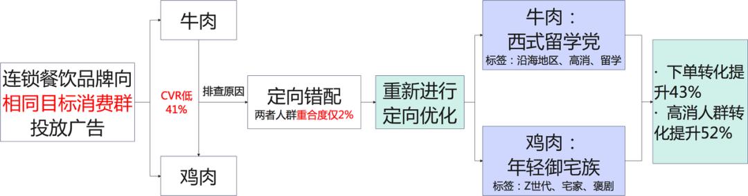 某连锁餐饮品牌为旗下牛肉和鸡肉两条产品线投放广告,用相同资源触达同类目标消费者,结果发现牛肉小食的转化率比鸡肉整整低41%。如果放在以往,企业可能会将异常原因归结到产品本身,后续决策大概率会将投放预算从牛肉直接调整给鸡肉。