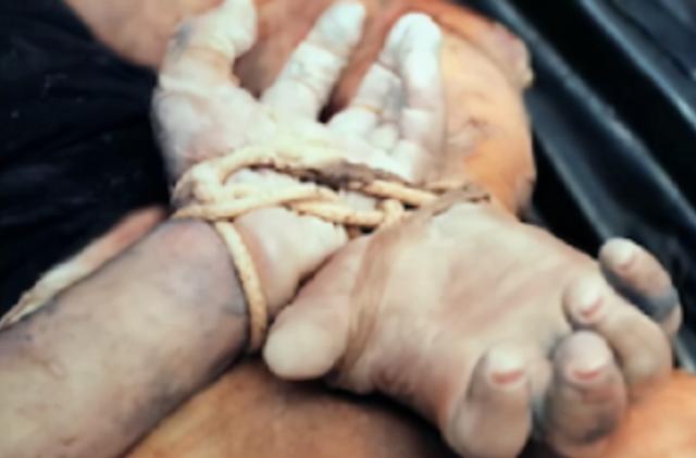 警方立刻将绳子切断,随着混凝土块的下沉,尸体的全身也彻底浮出水面,他们立刻将尸体捞上来,发现死者是一名女性,双手被捆绑在身后,下半身赤裸,被胶带封住了嘴。