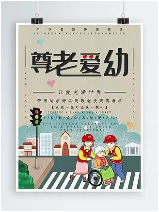 尊老爱幼是中华民族的传统美德,是先辈传承下来的宝贵精神财富。人因为有了这种美德而变得纯洁高尚,社会因为有了这种美德而变得稳定和谐。我们为有这样的美德而感到骄傲和自豪,我们要把这种美德世代相传,让全社会都能认同接受,并变成每个人的自觉行动。这样,中华民族的优良传统才能持久传播,经久不衰。