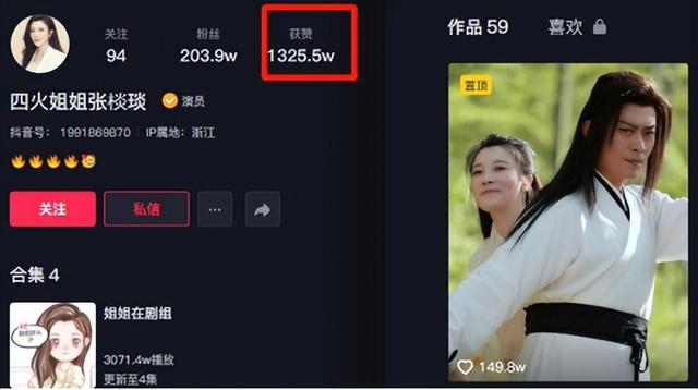 最先吃到“螃蟹”的“康姨妈”张棪琰的抖音账号为“四火姐姐张棪琰”,目前粉丝数量为203.8万,在59个作品中,近三分之二都是美妆护肤类,共计获赞1324.5万。她最早一则护肤类视频发布于今年1月,距今已半年有余。