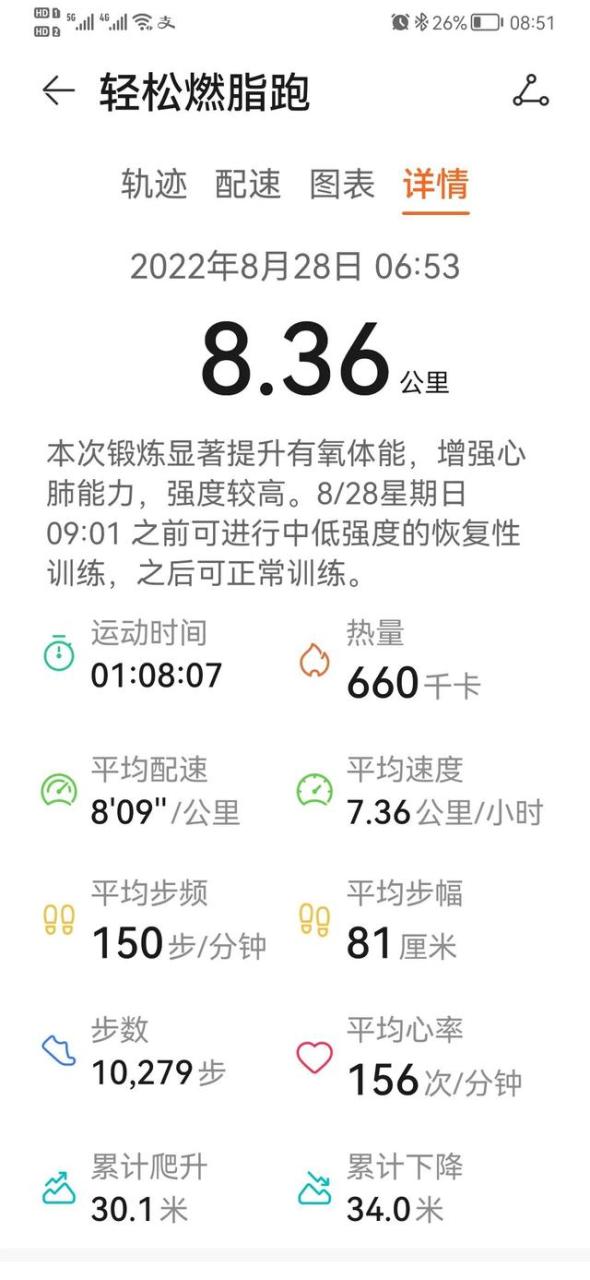 总的来说,今天距离突破八公里。平均配速全部在八分钟范围。今后以此为目标。