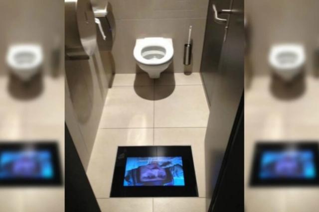 如果你仔细想想,这个创新是相当天才的。每个洗手间的地板上都安装了小的电影屏幕,当你在做你最亲密的事情时,你不会错过任何一部电影。希望屏幕能保持干净。