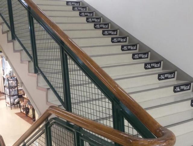 也许我们应该把这个楼梯和全方位的餐厅收据结合起来,以达到最终的健身目标。下次不用电梯了,让这个计算卡路里的楼梯照亮你的道路,让你的选择更有回报。