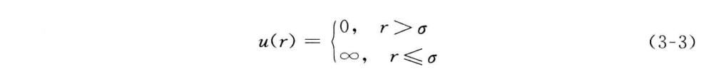 硬球势是一种最简单的势函数,它把分子近似成直径为σ相互间没有吸引力的刚性硬球(图3-3)。