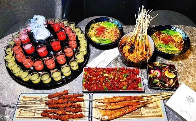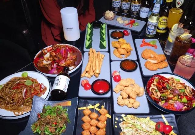 餐品特色:里有独特的酒水AK48三圈渐变色的果味调酒,入口柔度数低,共48杯!新派的下酒美食钵钵鸡、香辣掌中宝、柠檬鸡脚、烤整条马步鱼、秘制羊肉串、大块牛肉面等。