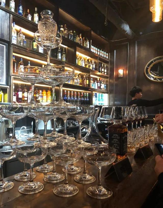 15米的吧台,四层凹凸酒柜,过关的酒洞高尔夫不喝酒的来吃餐吃饱的来喝酒