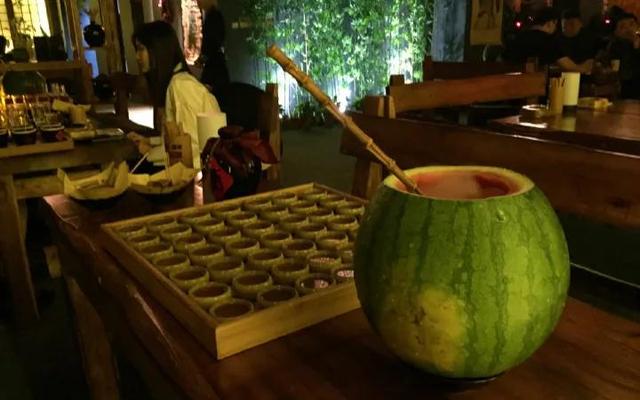 有整个西瓜抱上桌的西瓜酒、魑魅魍魉的薄荷火酒、七七四十九杯的大阵仗金波,包括度数最高的女儿红,都是轻甜柔香的口感。吃着下酒卤味,听着驻唱歌声,感受中国风。