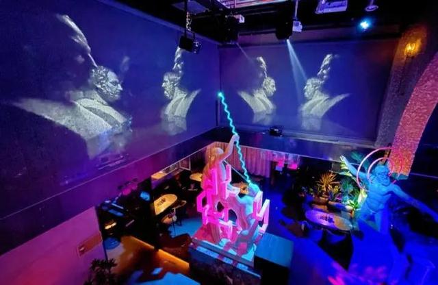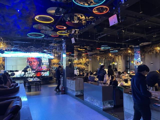氛围感很好,大厅有沙发、卡座、私密包间、可以唱歌、听歌。灯光在24点后会从柔和变成闪烁~