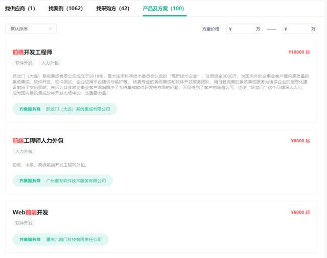 解放号在分析需求与评估项目方面做的比较好,但是平台上政府采购的项目比较多,但基本上都是小公司接包为主;看了以下前端的接单,收入也还是不错的,但是相对市场均价会稍微低一点: