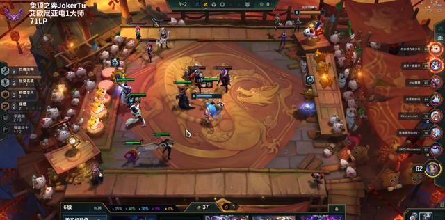 打野上5人口,3-2上6人口,3阶段是一个非常关键的阶段,多次测试兔子发现,纳尔这个阵容,你得快速三星,而纳尔和莫甘娜都特别难3,这就需要大量的经济和运营的连贯性,所以6人口这波不能D太多,但是又要能连胜,所以最佳就是保留两个保镖的两星挂3约,然后凑出3白法加纳尔,这其中3个以上两星,基本上就够3阶段连胜了,而且不会花太多经济,而不是直接组成最终阵容的3费2星,这样会导致经济崩盘,没有足够的空间三星纳尔。