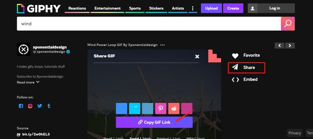 搜到喜欢的动图,单击图片进入,点击图片右边的share,然后复制动图链接,在网址上粘贴网址,打开该动图单独的界面,就可以单击右键将图片另存到电脑上。